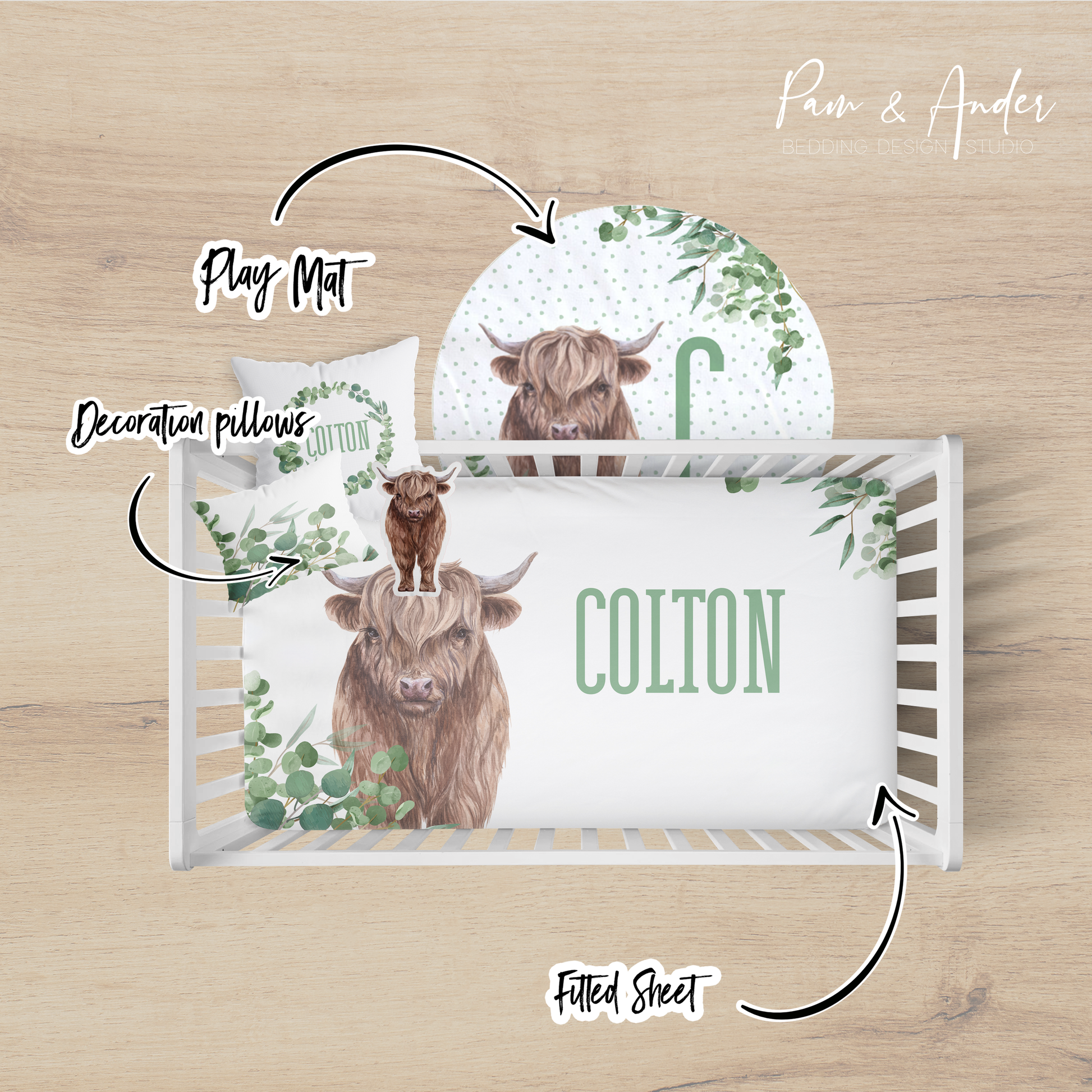 Highland Cow Boy Crib bedding set