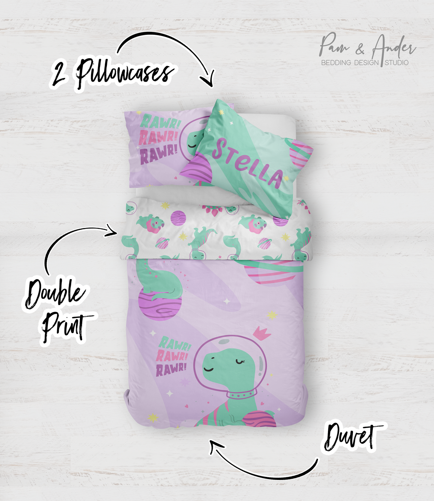 Space Dino Girl Bedding set